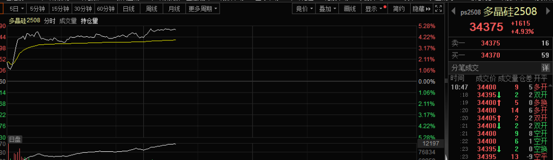 多晶硅2508最近的多头形态逐渐成形。最近五个交易日,该品种有四天上涨,今早更是发动猛攻,高开之后直线拉升,涨幅一度超5%。